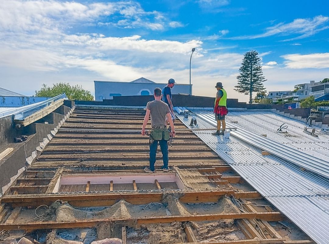 Remove existing roof, install new Coloursteel iron, and fit all flashing.